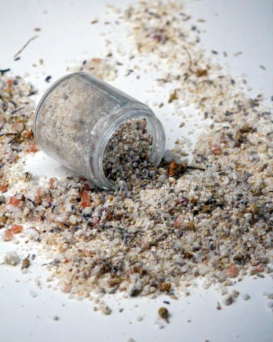 • Blend of organic flowers and essential oils with coarse and fine salts